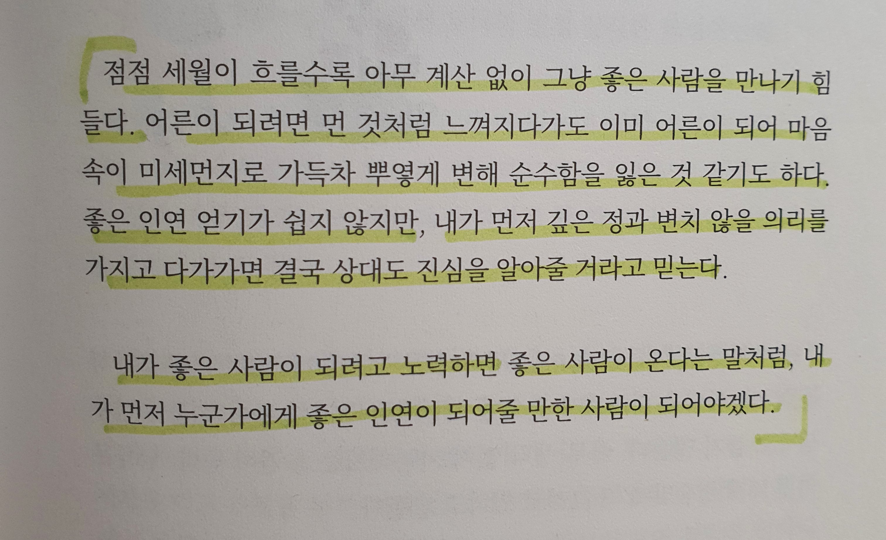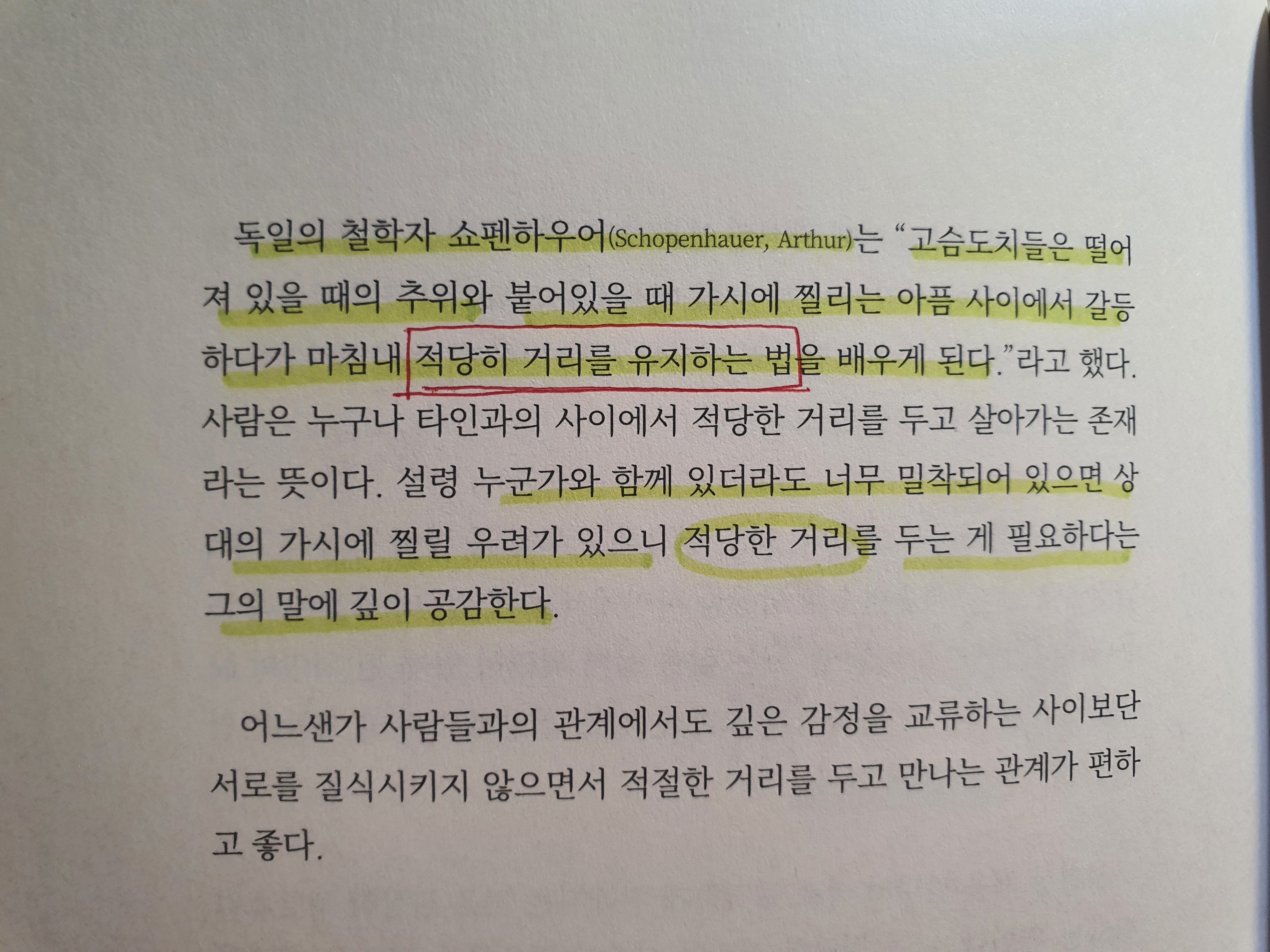 남보다 가족끼리 서로 상처를 주는 경우도 많은데 바로 너무 가까이 있기 때문이라는 생각이 들었다. 그래서 가끔은 깊은 감정을 교류하는 사이보다 적절한 거리를 두고 만나는 관계가 편하고 좋다는 작가의 말에 공감이 갔다.