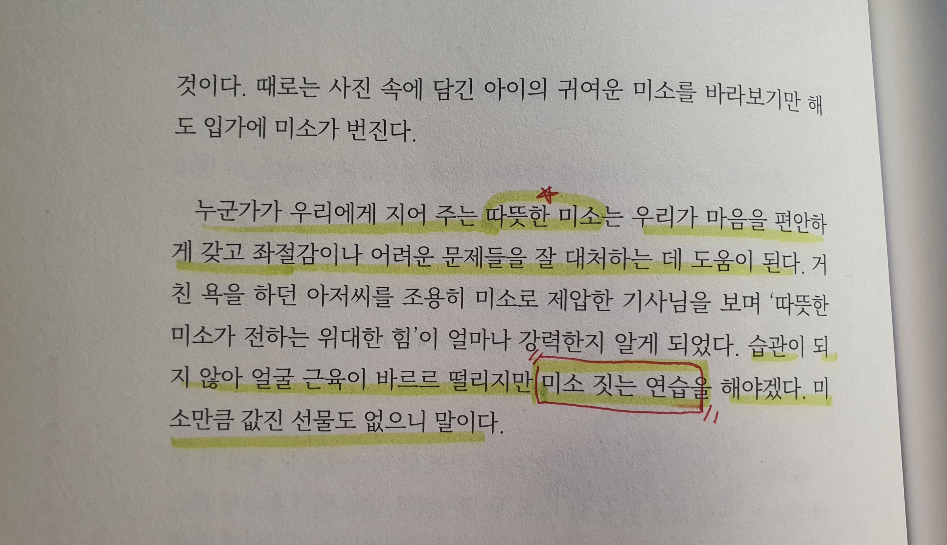 따뜻한 미소는 관계를 편안하게 유지해 주고 보는 사람의 마음과 기분을 좋게 만든다. 우리 독서모임에도 웃는 얼굴의 회원님이 계신데 줌 미팅에서 만나면 그냥 기분이 좋아진다. 힘든 것도 아닌데 미소 짓는 연습을 해보자. 매일 만나는 사람들에게 미소로 인사해 보자.