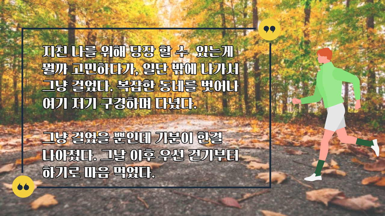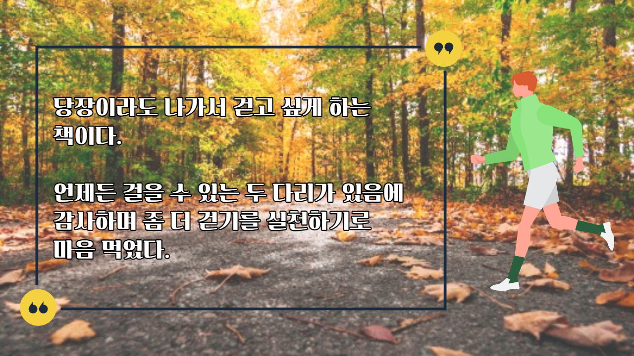 당장 걷기를 하고 싶어진다.